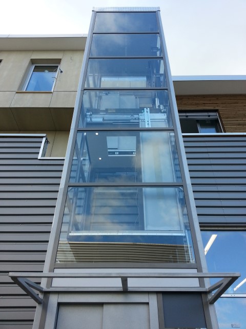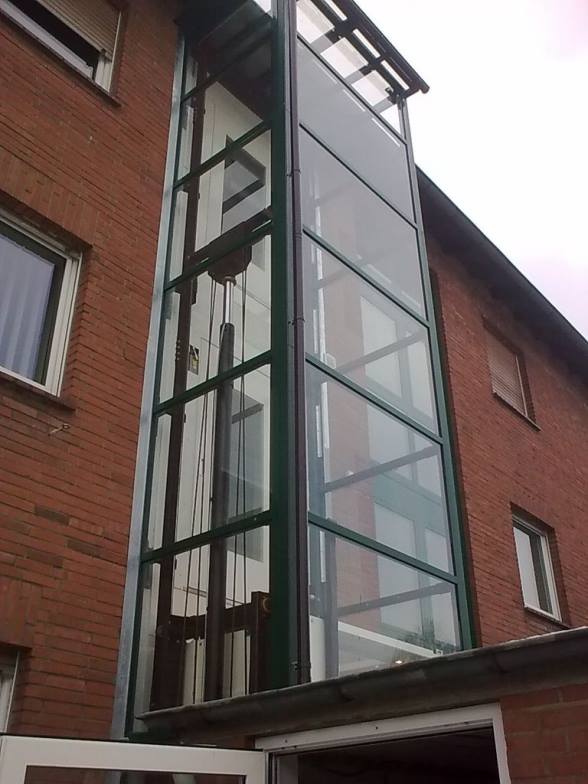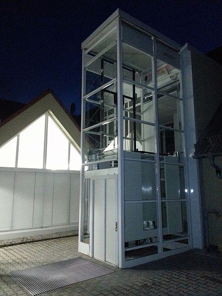 Schneller und unkomplizierter Einbau, auch nachträglich bei Gebäuden im Bestand. Bis 5 Haltestellen und 13 m Förderhöhe, Tragkraft max. 500 kg.